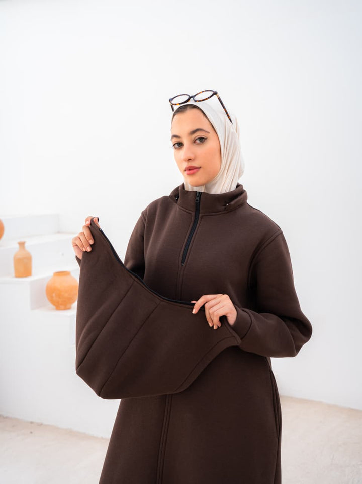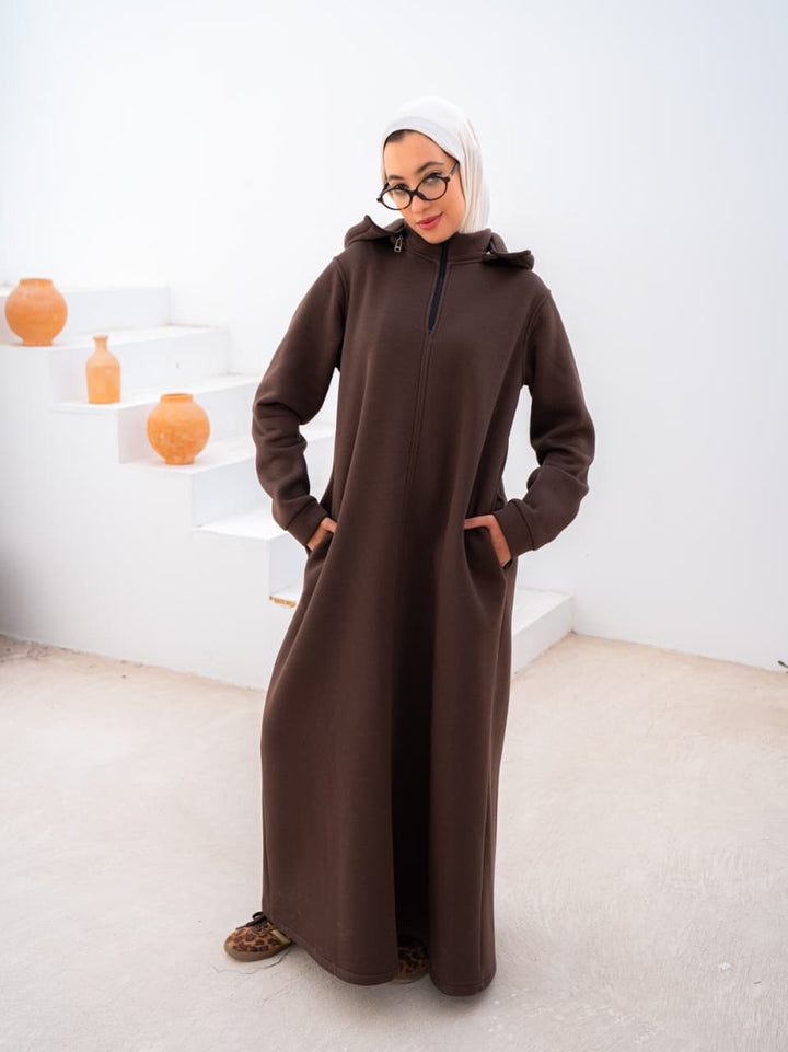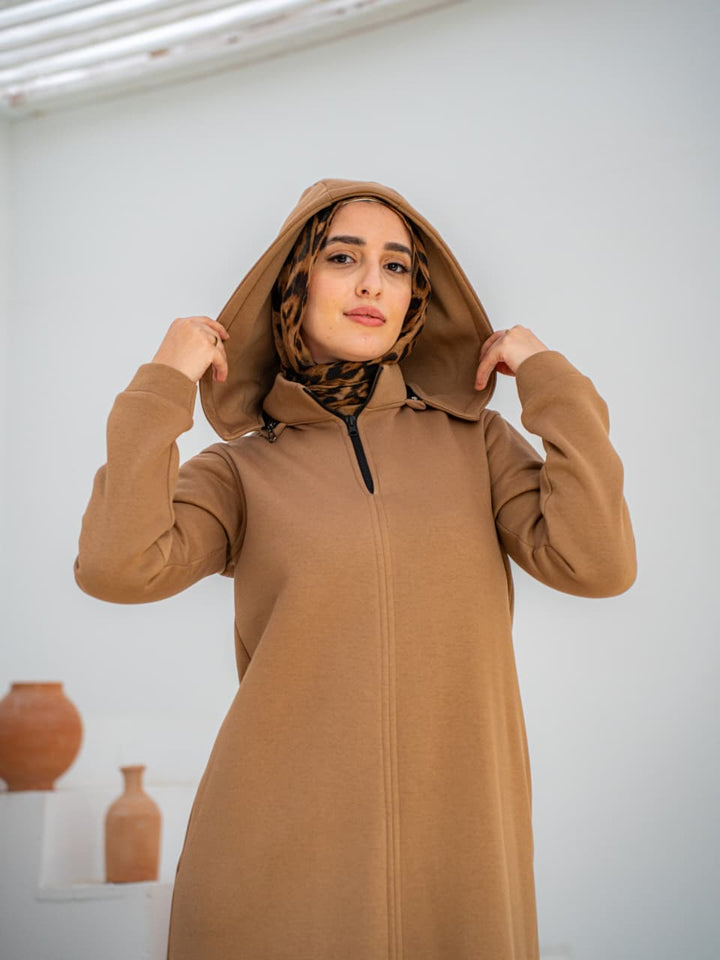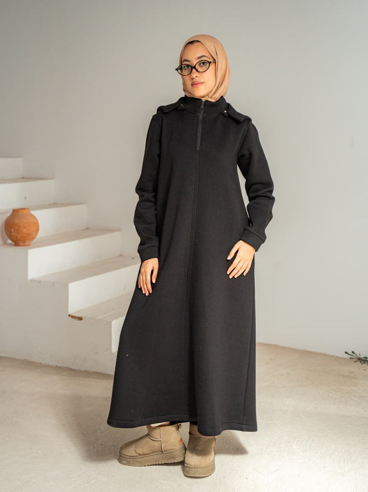 فستان شتوي من ميلتون ناعم وكابيشو قابل للفك لتنسيقات متعددة.