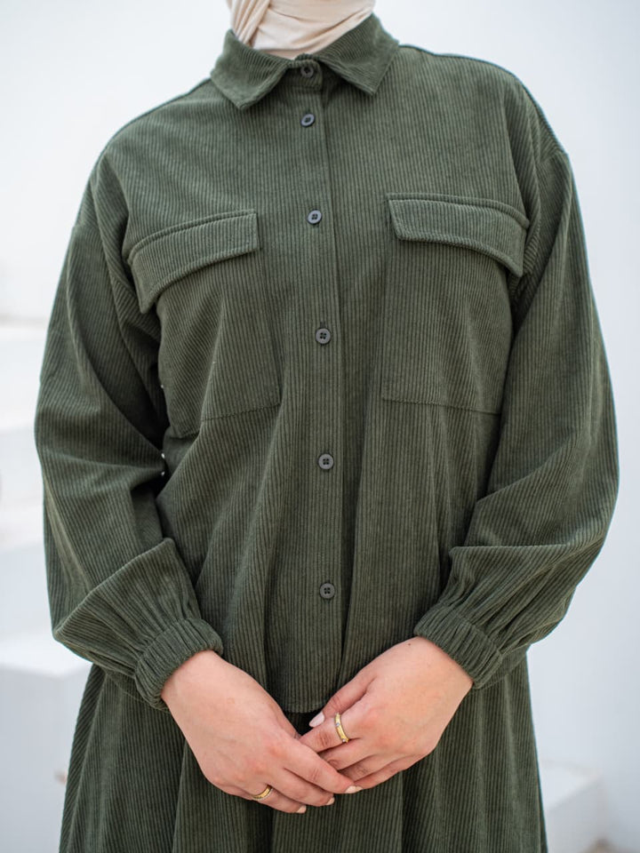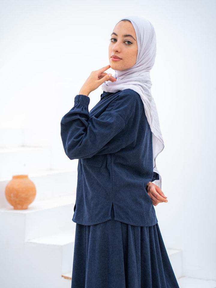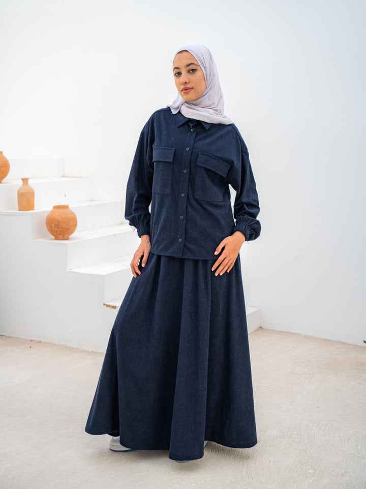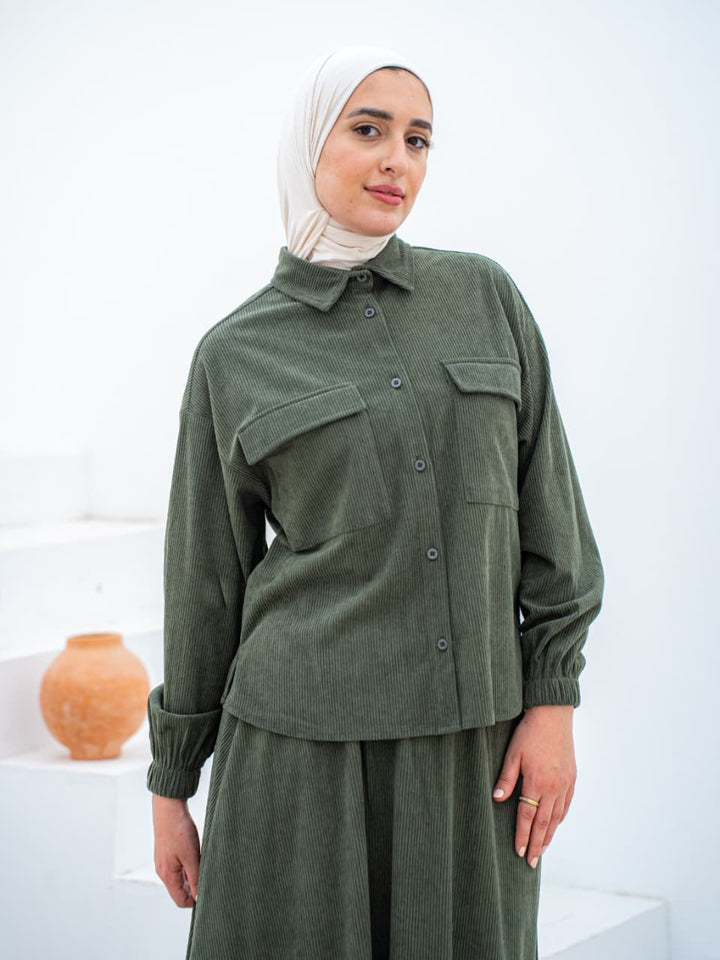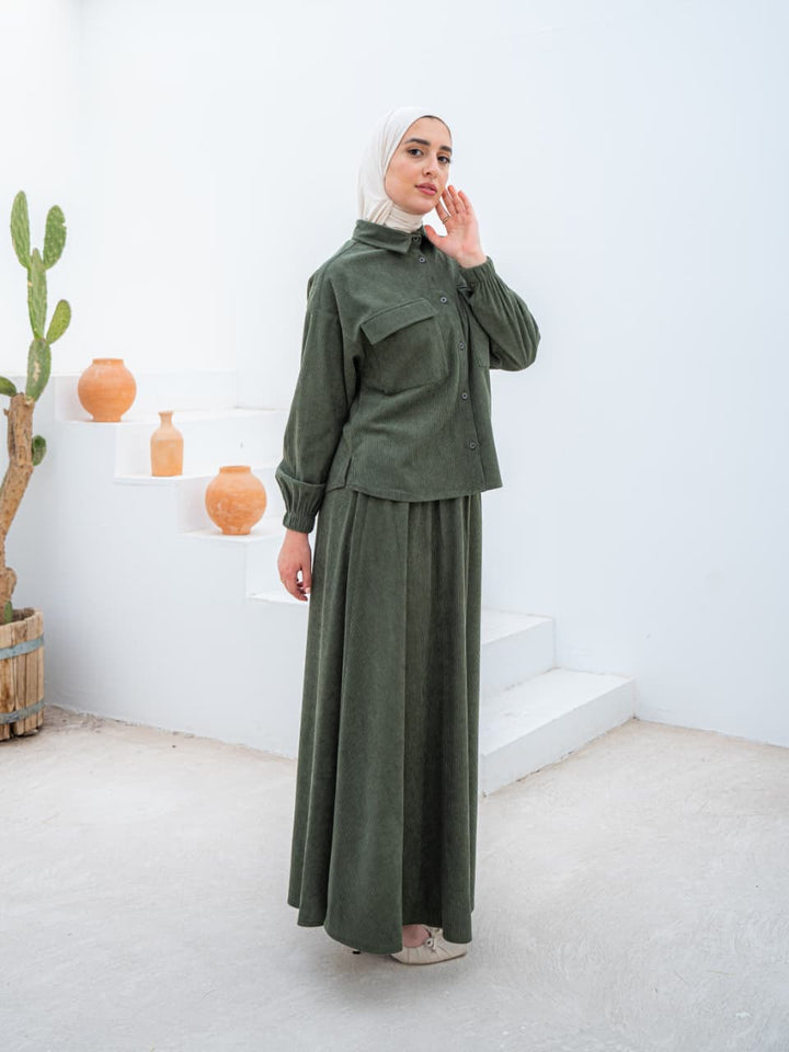 Two-piece ribbed bouclet set in warm autumn tones for an elegant, cozy look.